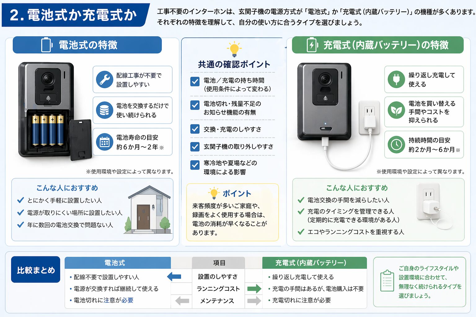 2. 電池式か充電式か